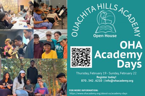 We would like to give you an invitation to come and visit our campus. “Academy Days” is a weekend where anyone who may be considering, if God would have them come to Ouachita Hills Academy, can visit and potentially join our OHA family by becoming a "student" for the weekend. This year it starts on Thursday afternoon, February 19th through Sunday, February 22nd.