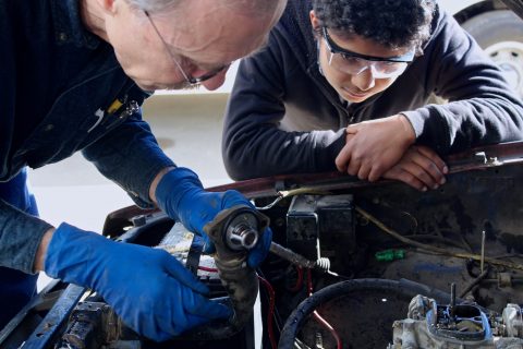 Automotive is great opportunity to dive into the anatomy of motor vehicles. What the students work on depends on the needs of that particular year, but students have the potential to work on a variety of projects. Students learn to replace parts such as water pumps, thermostats, alternators, exhaust manifolds, brakes, tires, and much more. They also learn how to use tire changers and balancers, how to clean parts, and how to use specialized equipment. They learn how to diagnose problems and use problem solving skills in order to determine a cost effective method to repair a vehicle.